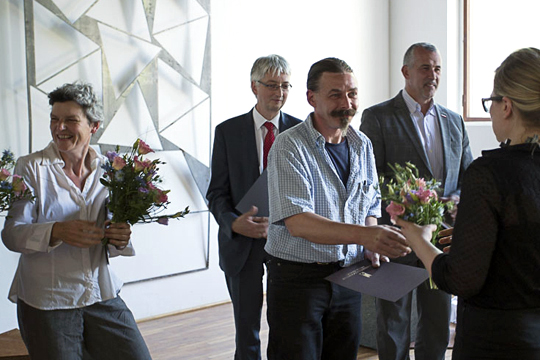 Verabschiedung des zweiten Fortbildungskurses 17. April 2016 540 × 360 Verabschiedung des zweiten Fortbildungskurses Zeugnisübergabe Uwe Schön durch Anne Holderied, Wolfgang Beck, Thomas Keindorf