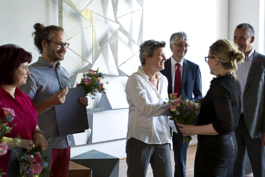 Verabschiedung des zweiten Fortbildungskurses 17. April 2016 540 × 360 Verabschiedung des zweiten Fortbildungskurses Zeugnisübergabe Ina Michalski durch Anne Holderied, Wolfgang Beck, Thomas Keindorf